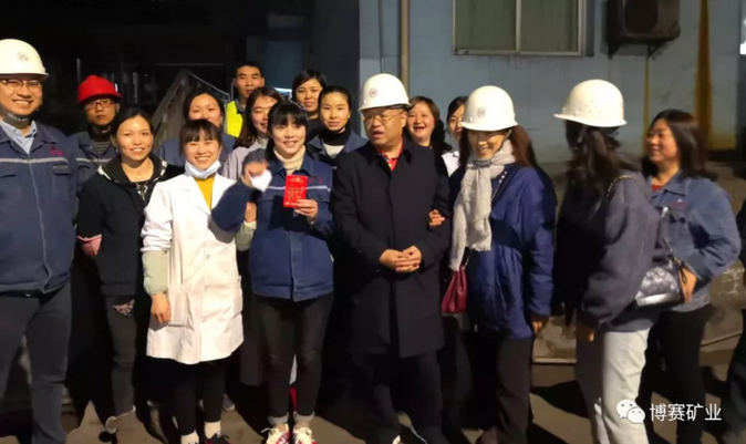 On New Year's Eve, MD Yuan Zhilun and his wife, Ms. Yang Yi, accompanied by Assistant General Manager Yuan Lingnan and Director Jiao Fengjiang of Shuijiang Alumina Refinery, came to the company to greet the cadres who still stuck to their posts during the Spring Festival and to offer them festive greetings and good wishes.